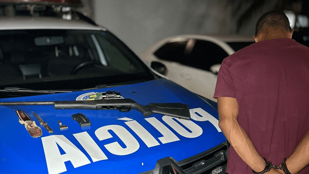 Um homem de 29 anos foi preso neste fim de semana suspeito de usar uma faca e um rifle para ameaçar a esposa na residência do casal, na Vila Delfiore, em Aparecida de Goiânia. Tudo aconteceu na tarde do último sábado (10/5), durante uma discussão entre os dois, ouvida por vizinhos que acionaram a polícia.