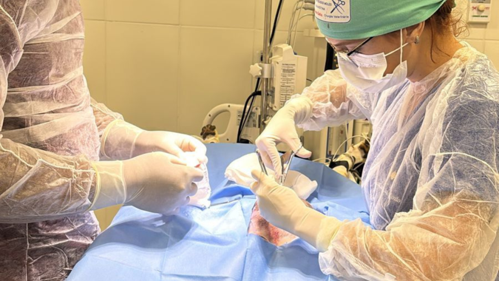 Animal foi atingido por um tiro de chumbinho e precisou de ter a musculatura abdominal reconstruída