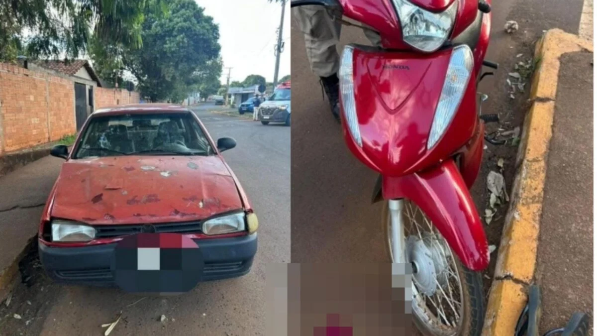 Uma idosa de 61 anos ficou gravemente ferida após a motocicleta que pilotava, uma Honda Biz 125, colidir contra um VW Gol, ambos de cor vermelha na tarde de quinta-feira (19), em Jataí, Sudoeste de Goiás. De acordo com a Polícia Militar, a mulher sofreu fratura na perna, apresentou hemorragia e precisou ser levada às pressas para o hospital. Câmeras de segurança registraram o momento do acidente.