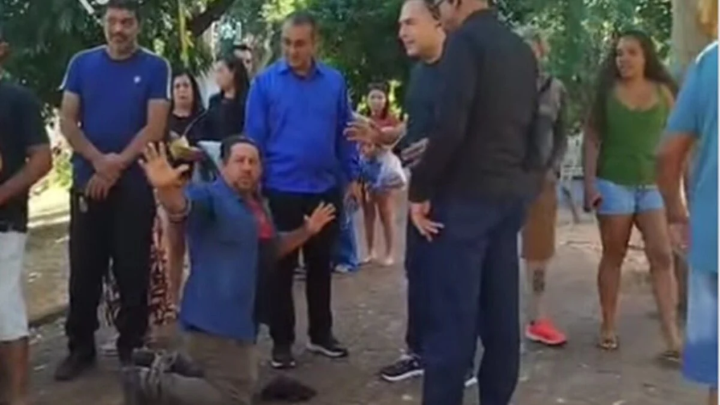 Um ambulante foi flagrado ajoelhado e implorando ao prefeito Sandro Mabel (UB), para não ter sua mercadoria apreendida na manhã do último domingo (20), no Zoológico de Goiânia. As imagens do momento circularam rapidamente pelas redes sociais.