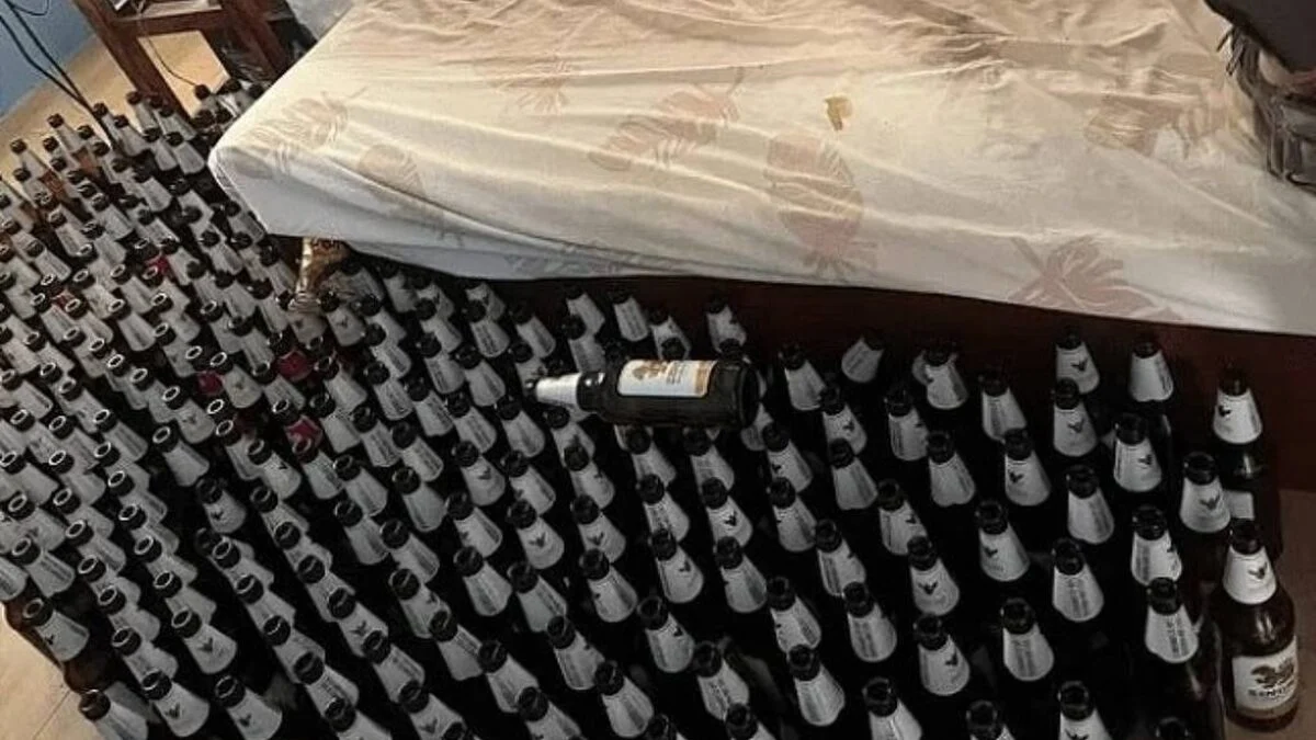 Cerca de 100 garrafas foram encontradas no quarto da vítima