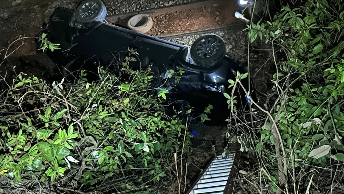 - Caminhonete cai em despenhadeiro e atinge trilhos de trem em Luziânia; mulher fica gravemente ferida