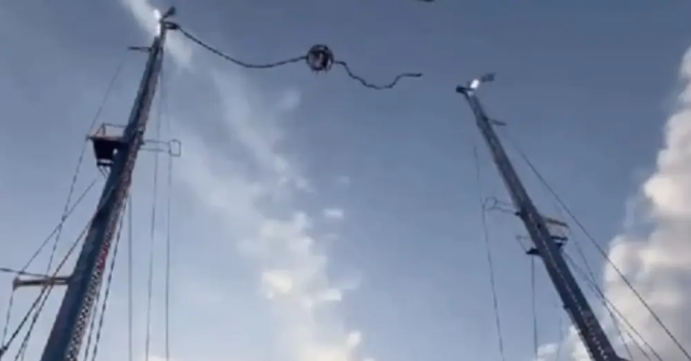 Um dos cabos de um brinquedo estilo ‘estilingue humano’ se rompeu e deixou quatro crianças feridas em uma feira na Espanha. Um vídeo mostra o exato momento em que as crianças são arremessadas para baixo.